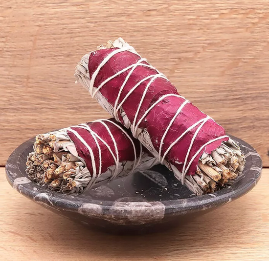 Bâton de sauge blanche avec pétale de rose