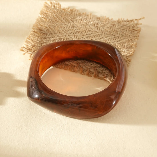 Bracelet jonc semi-épais en résine marbrée, marron.