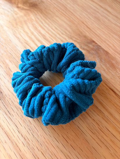 Chouchou en velours bleu canard. Fabriqué en France, avec beaucoup d'amour