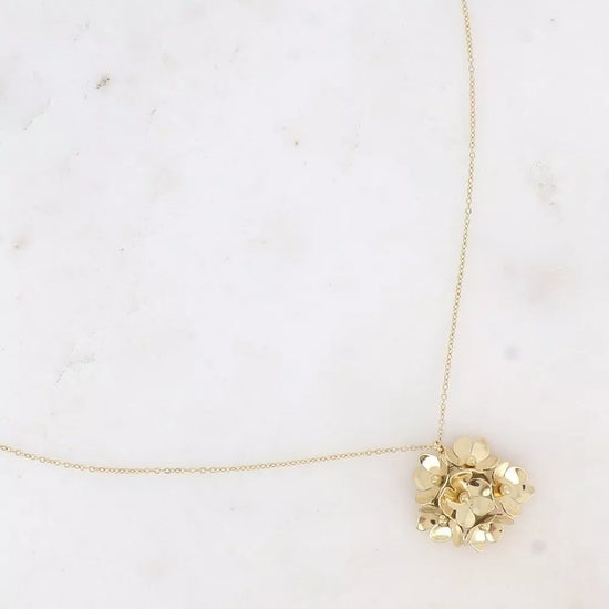Collier sur chaîne en acier inoxydable composé d'un pendentif en forme de bouquet de 6 fleurs, ressemblant à des fleurs de cerisier.
