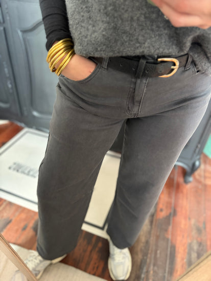 Pantalon Ninou , gris, coupe droite. Très souple , doux et agréable à porter.